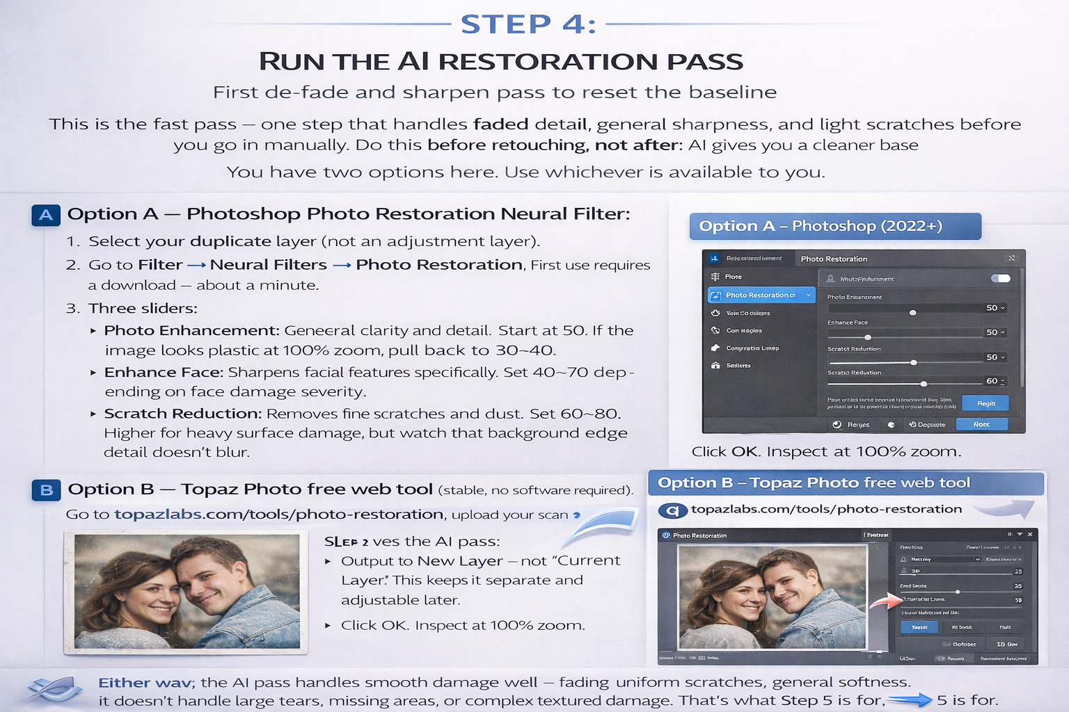 Option A — Photoshop Photo Restoration Neural Filter: